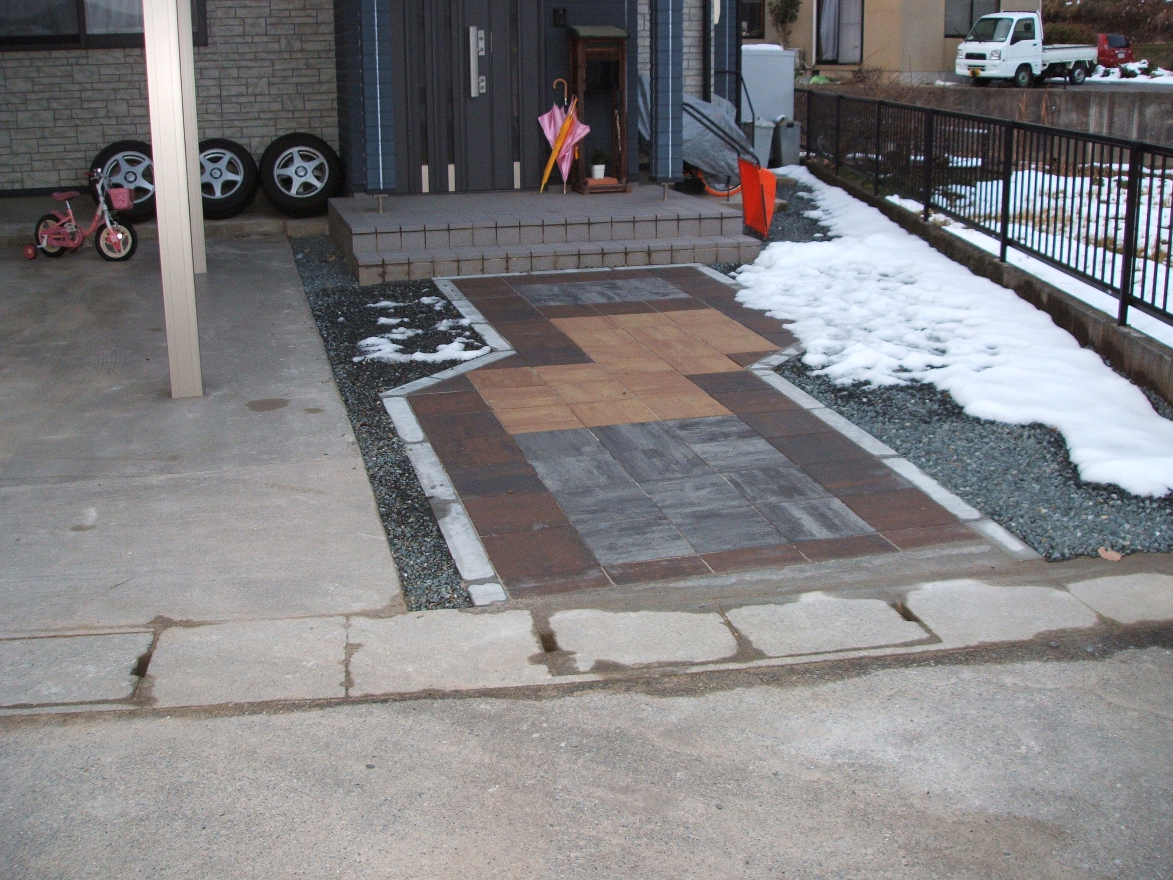 日高町I様邸、カーポート、デッキ、アプローチ、砕石散布、防草工事、土間コン打設お世話になりました。