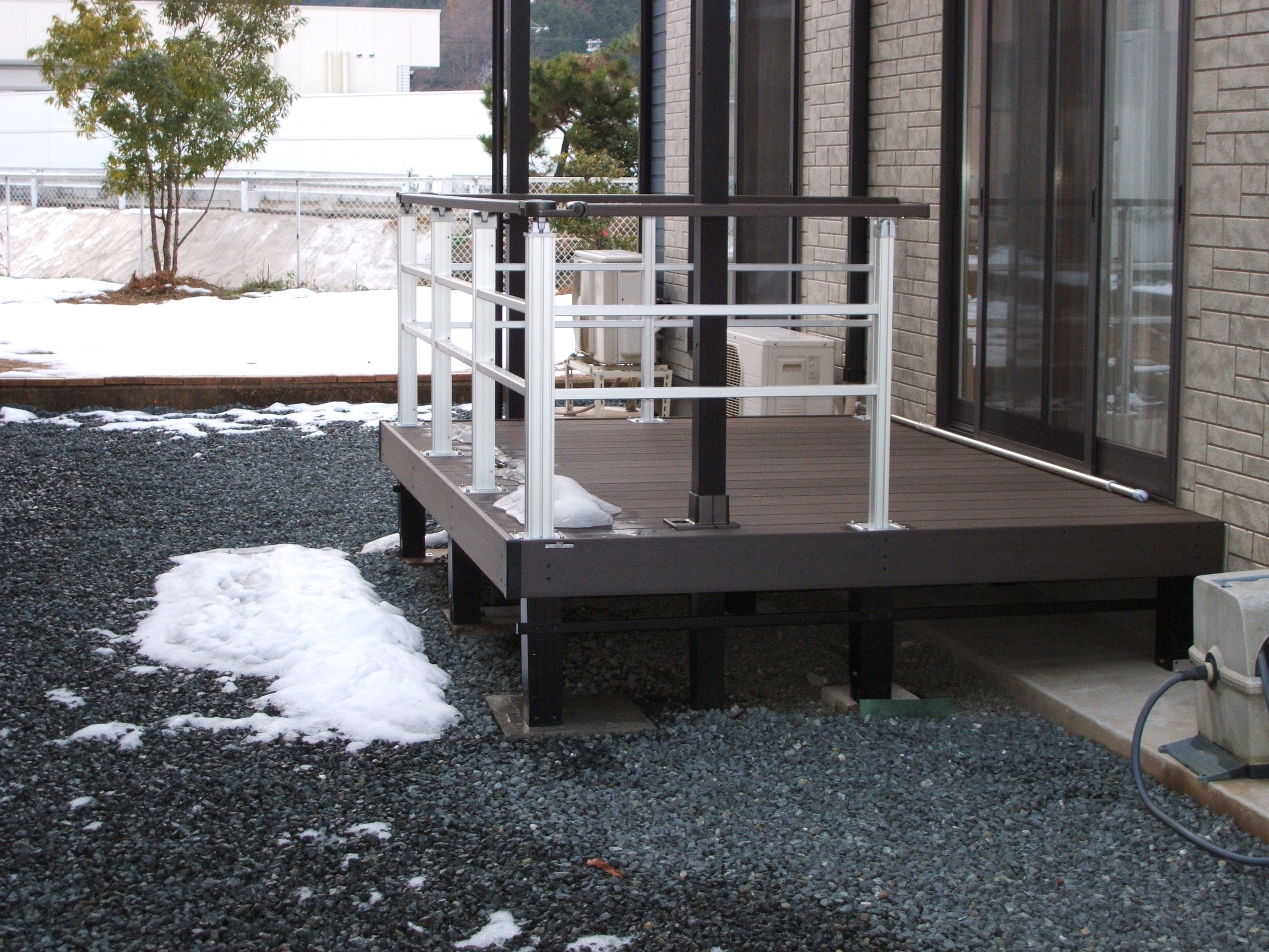 日高町I様邸、カーポート、デッキ、アプローチ、砕石散布工事完了